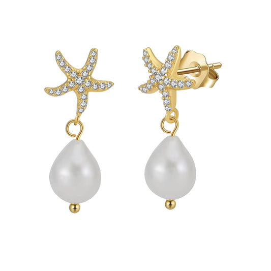 Elena Earrings – 925 Sterling Silver, 14k Gold Plated with Freshwater Pearl